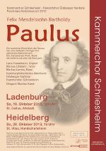 Oratorium "Paulus" in St. GallusAm Samstag, den 19. Oktober 2013, führt der Kammerchor Schriesheim mit der Dilsberger Kantorei das Oratorium "Paulus" von Felix Mendelssohn Bartholdy auf. Die Leitung hat Markus Karch, Beginn ist um 20 Uhr. Näheres steht im Konzertplakat
